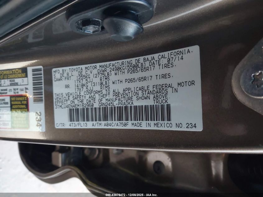 2014 TOYOTA TACOMA - 3TMLU4EN4EM162960, цвет - Серый, 4.0, Бензин, Полный привод из США