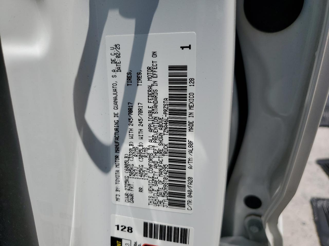 2025 TOYOTA TACOMA - 3TYLD5KN9ST014295, цвет - Белый, 2.4, Бензин, 4x4 с задним приводом из США