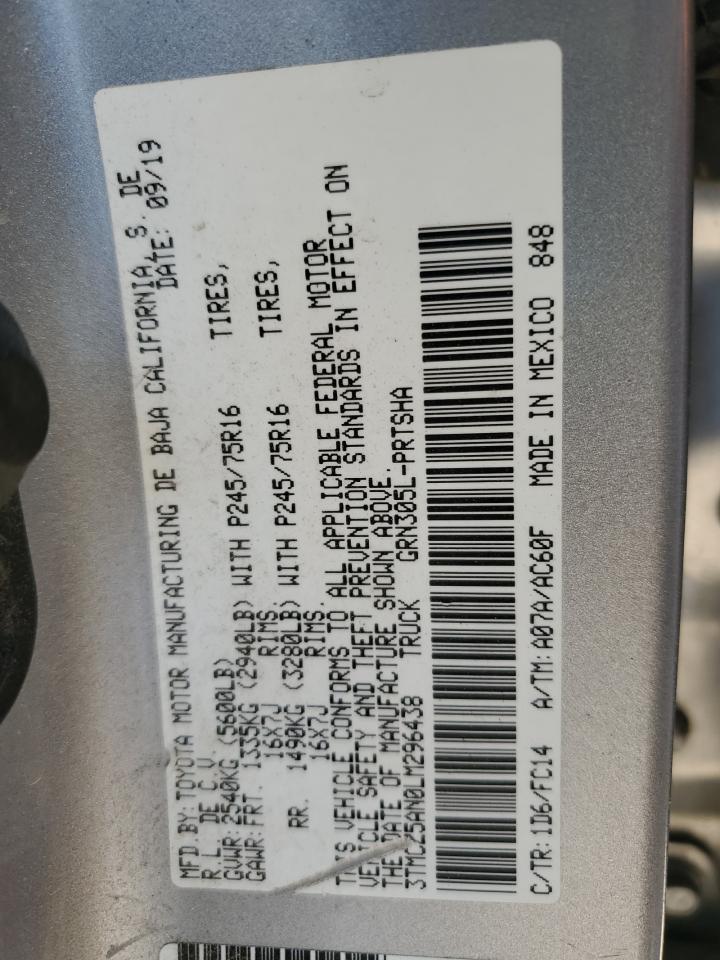 2020 TOYOTA TACOMA - 3TMCZ5AN0LM296438, цвет - Серебряный, 3.5, Бензин, 4x4 с задним приводом из США