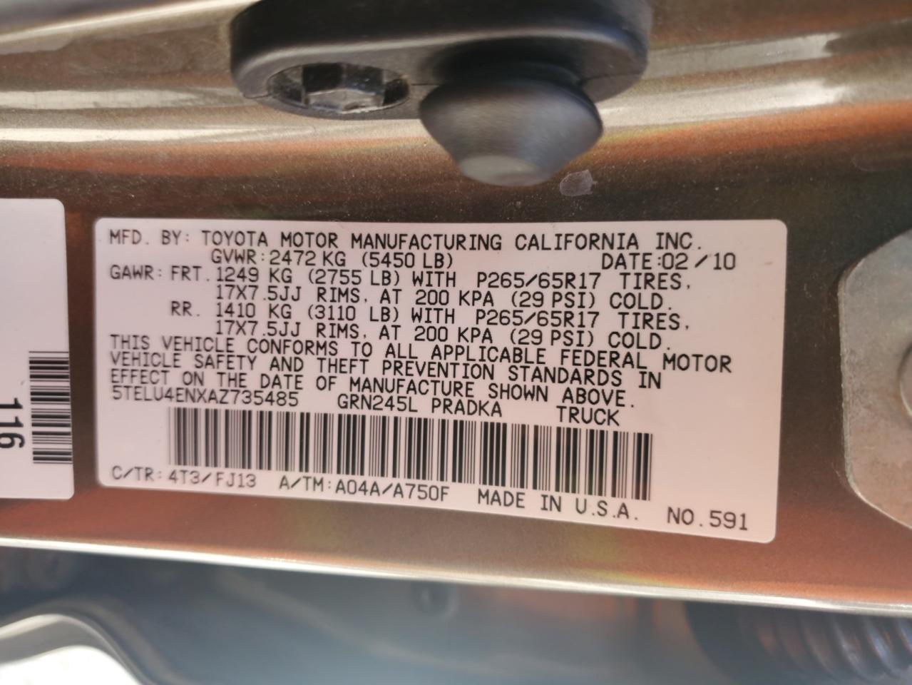 2010 TOYOTA TACOMA - 5TELU4ENXAZ735485, цвет - Коричневий, 4.0, Бензин, 4x4 с задним приводом из США