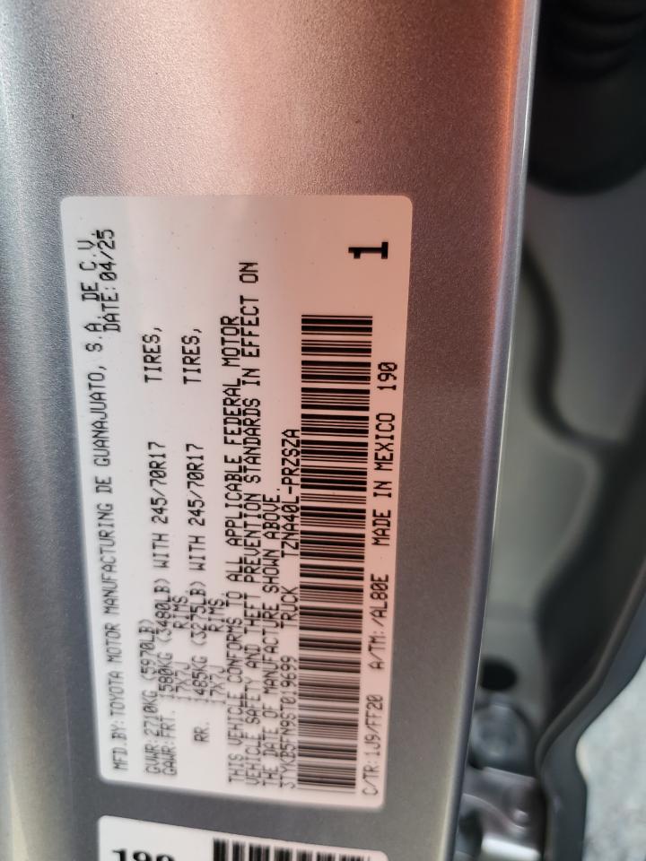 2025 TOYOTA TACOMA - 3TYKB5FN9ST019699, цвет - Серебряный, 2.4, Бензин, Задний привод из США