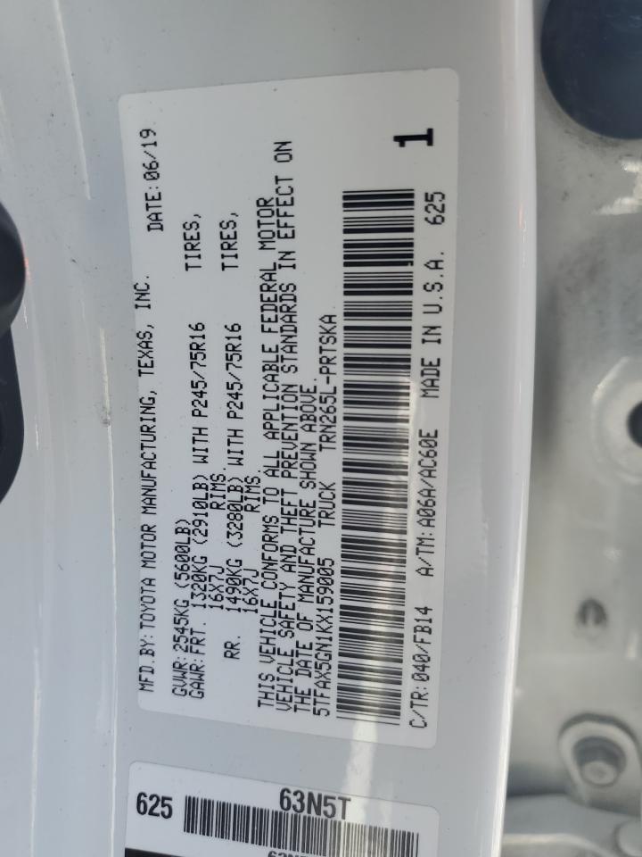 2019 TOYOTA TACOMA - 5TFAX5GN1KX159005, цвет - Белый, 2.7, Бензин, Задний привод из США