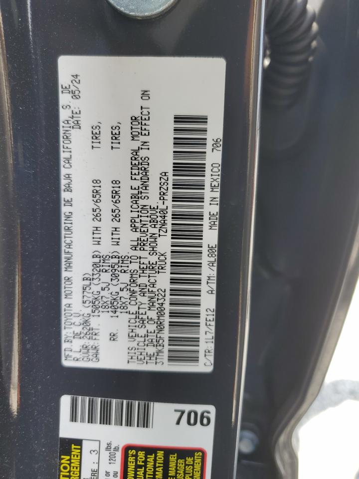 2024 TOYOTA TACOMA - 3TMKB5FN0RM004322, цвет - Серый, 2.4, Бензин, Задний привод из США