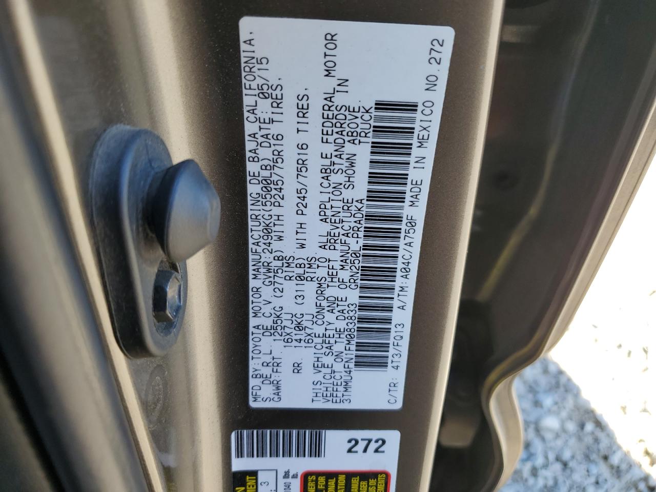 Цвет СерыйЦилиндры 6Привод 4x4 с задним приводомVIN 3TMMU4FN1FM083833Состояние Заводится и едет (проверено)Повреждения Задняя