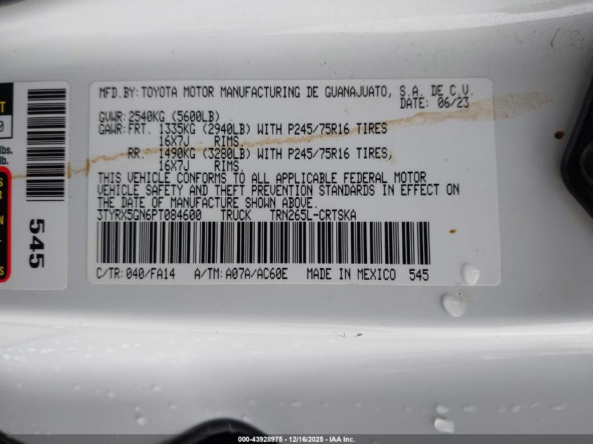 2023 TOYOTA TACOMA - 3TYRX5GN6PT084600, цвет - , 2.7, Бензин, из США