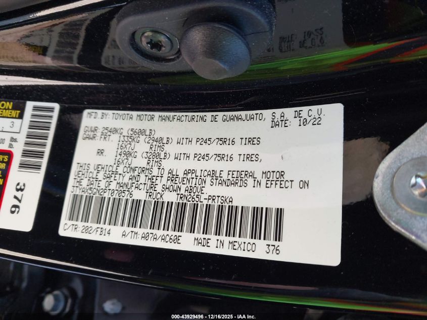 2023 TOYOTA TACOMA - 3TYAX5GN2PT070576, цвет - Черный, 2.7, Бензин, из США