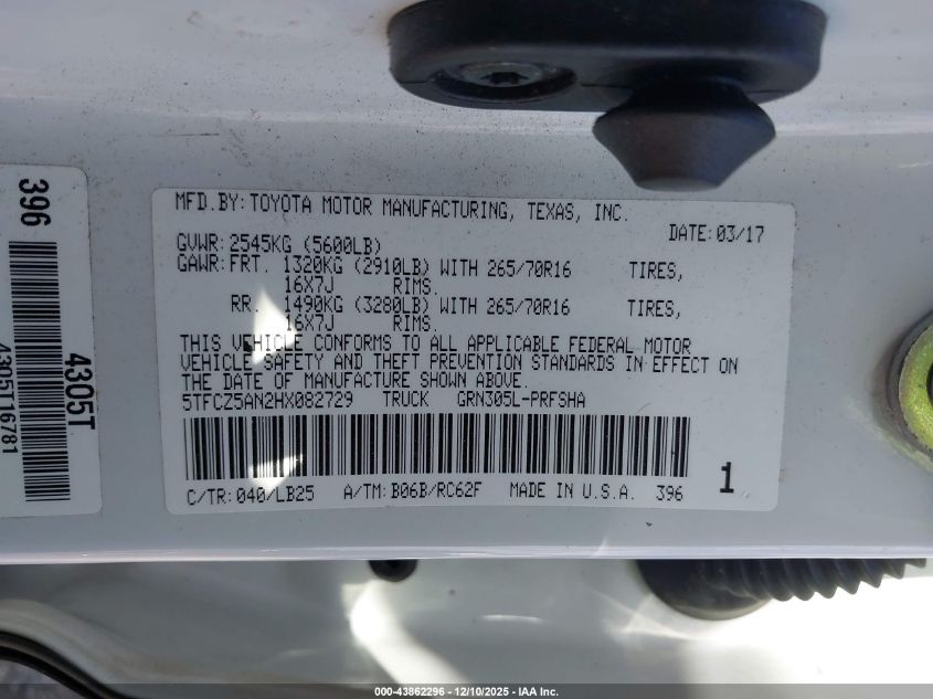 2017 TOYOTA TACOMA - 5TFCZ5AN2HX082729, цвет - Белый, 3.5, Бензин, Полный привод из США