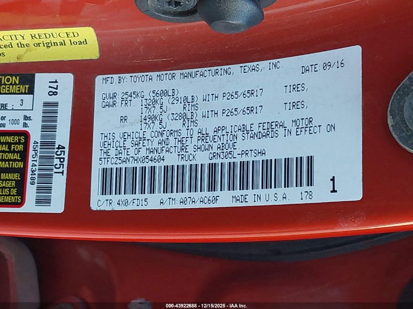2017 TOYOTA TACOMA - 5TFCZ5AN7HX054604, цвет - Апельсиновый, 3.5, Бензин, Полный привод из США