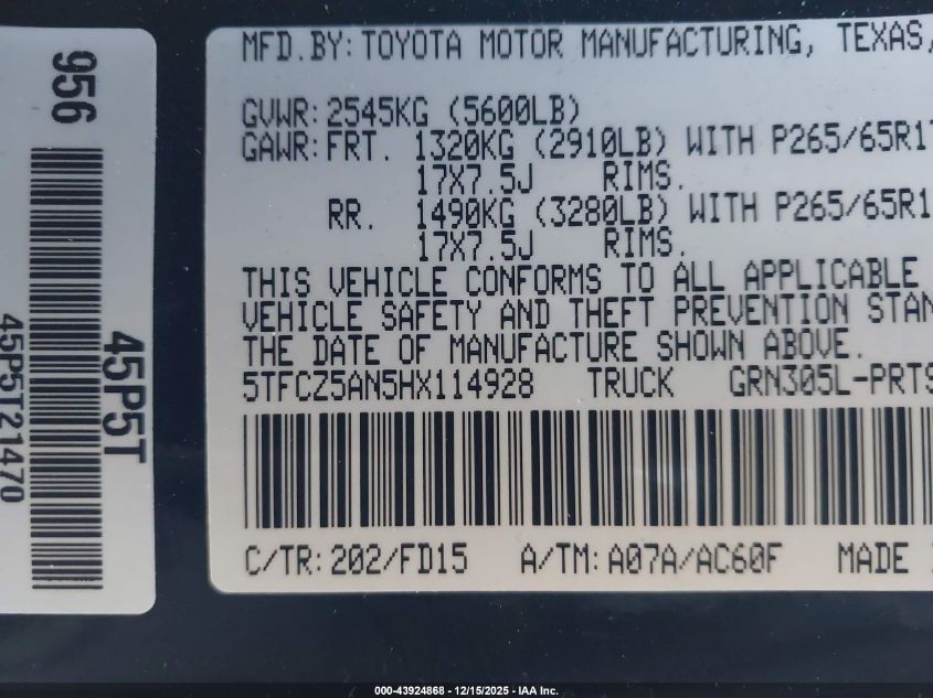 2017 TOYOTA TACOMA - 5TFCZ5AN5HX114928, цвет - Черный, 3.5, Бензин, Полный привод из США