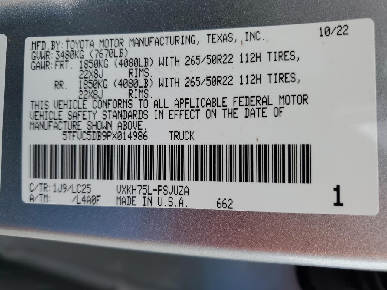 2023 TOYOTA TUNDRA - 5TFVC5DB9PX014986, цвет - Серебряный, 3.4, Гибрид, 4x4 с задним приводом из США