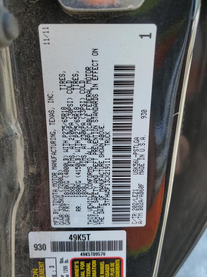 2012 TOYOTA TUNDRA - 5TFHW5F13CX219111, цвет - Черный, 5.7, Бензин, 4x4 с задним приводом из США