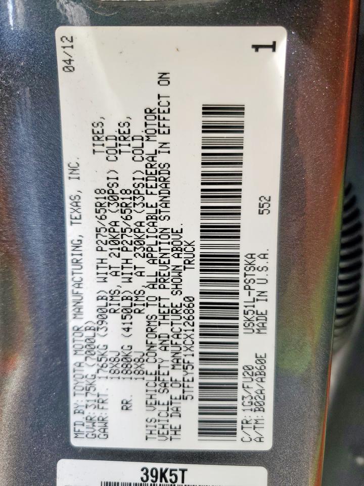 2012 TOYOTA TUNDRA - 5TFEY5F1XCX126860, цвет - Серый, 5.7, Бензин, Задний привод из США