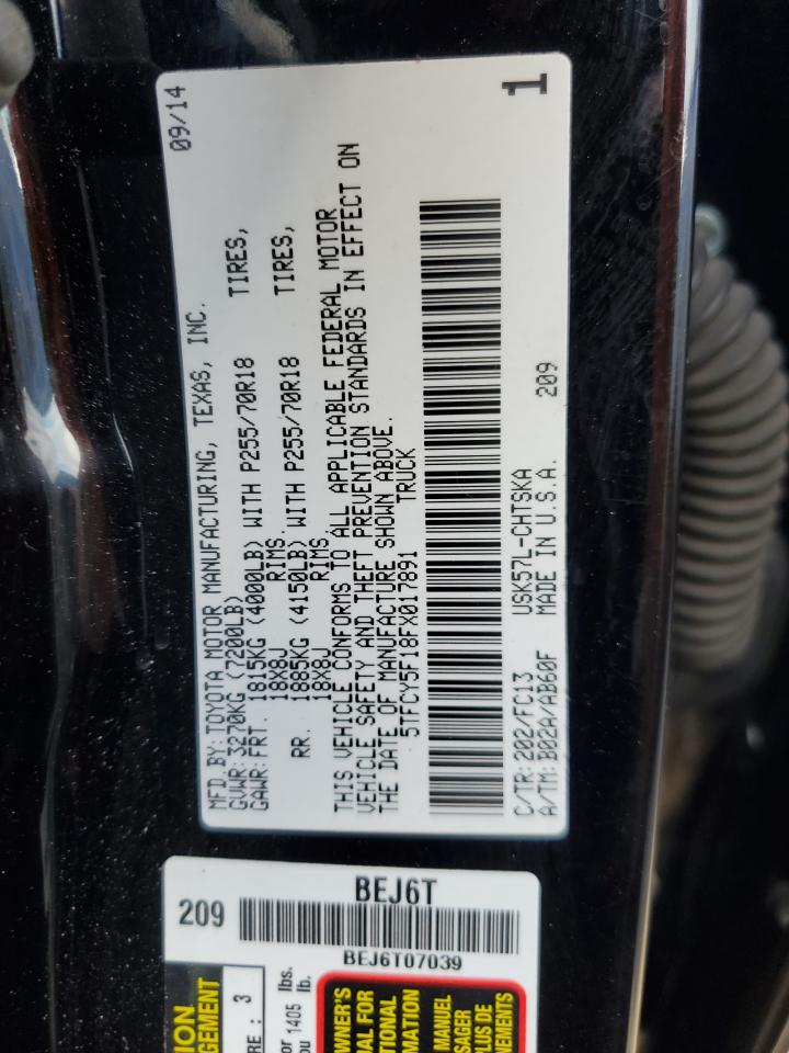2015 TOYOTA TUNDRA - 5TFCY5F18FX017891, цвет - Черный, 5.7, Бензин, 4x4 с задним приводом из США