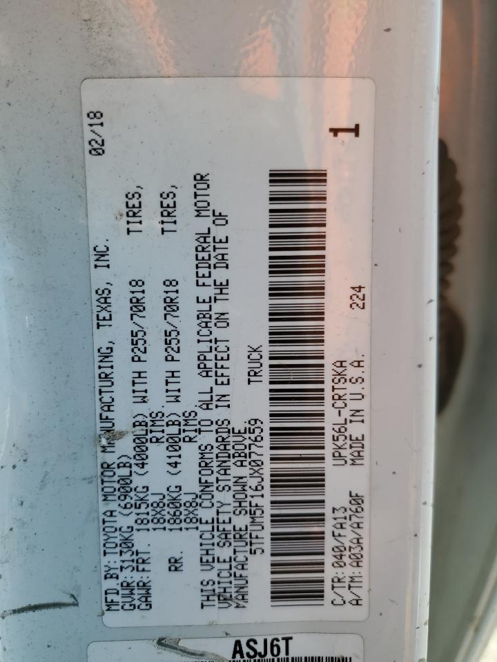 2018 TOYOTA TUNDRA - 5TFUM5F16JX077659, цвет - Белый, 4.6, Бензин, 4x4 с задним приводом из США