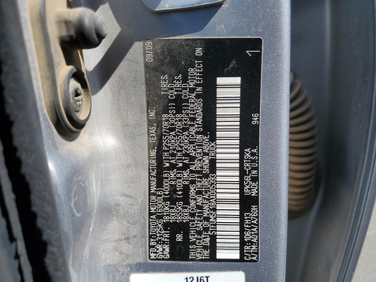 2010 TOYOTA TUNDRA - 5TFUM5F18AX005393, цвет - Серебряный, 4.6, Бензин, 4x4 с задним приводом из США