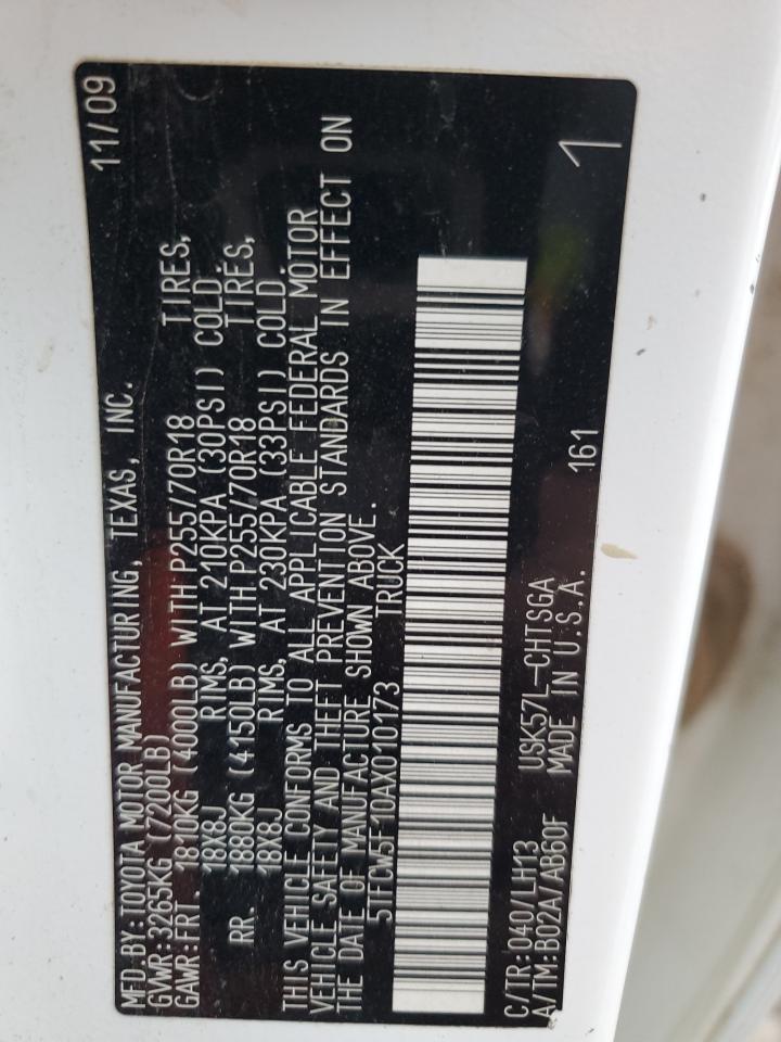 2010 TOYOTA TUNDRA - 5TFCW5F10AX010173, цвет - Белый, 5.7, Бензин, 4x4 с задним приводом из США