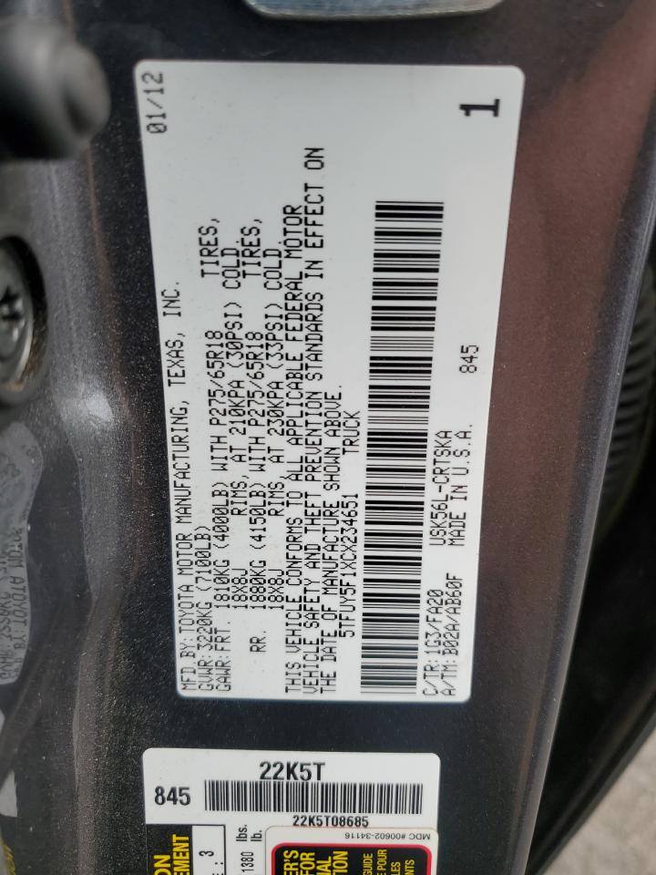2012 TOYOTA TUNDRA - 5TFUY5F1XCX234651, цвет - Серый, 5.7, Бензин, 4x4 с задним приводом из США