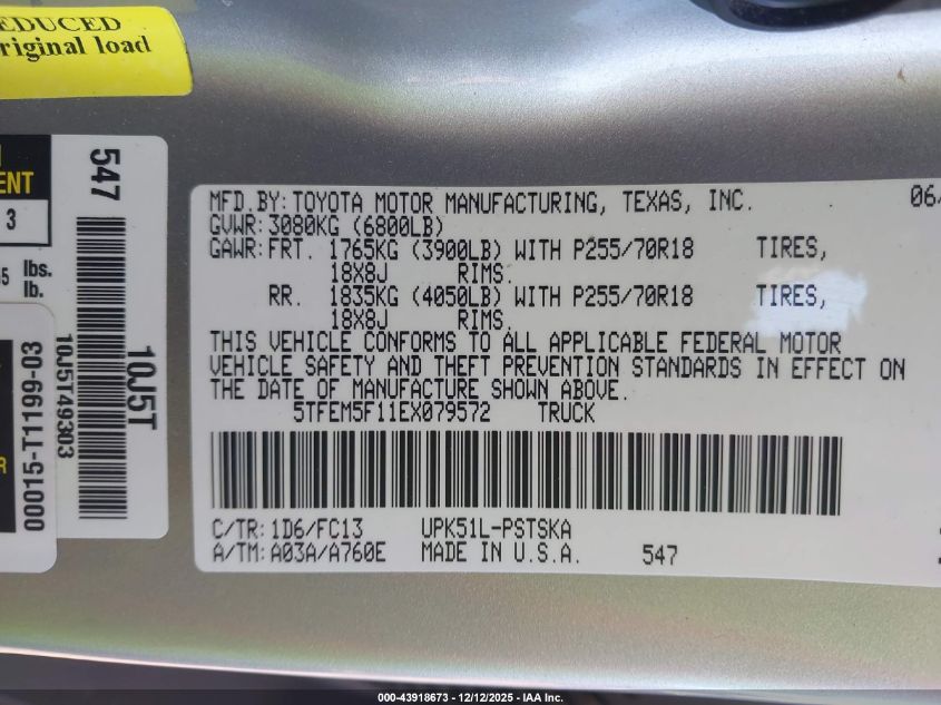 2014 TOYOTA TUNDRA - 5TFEM5F11EX079572, цвет - Серебряный, 4.6, Бензин, из США