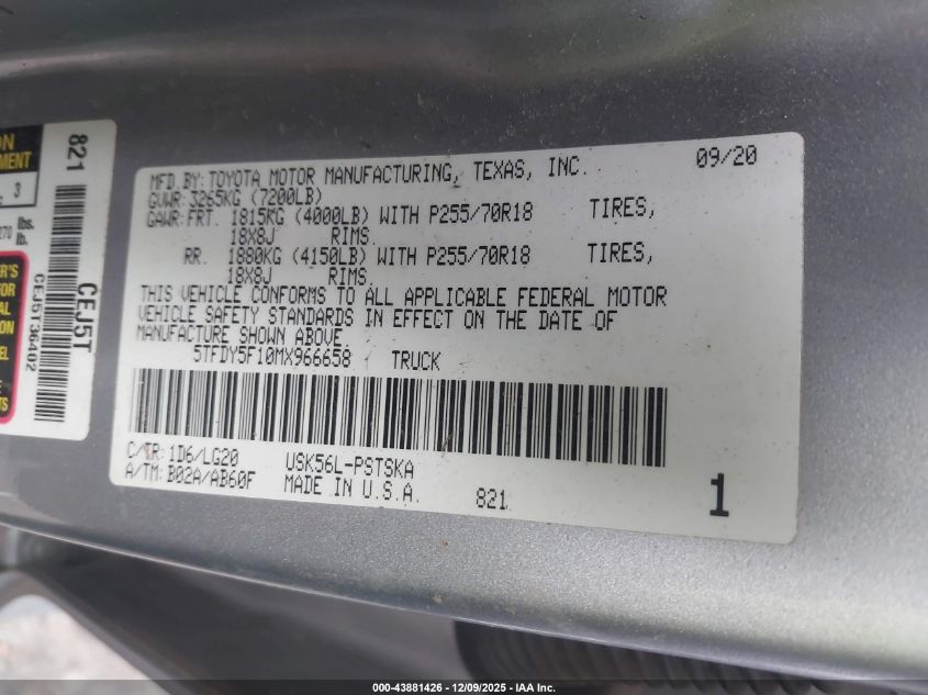 2021 TOYOTA TUNDRA - 5TFDY5F10MX966658, цвет - Серебряный, 5.7, Бензин, Полный привод из США
