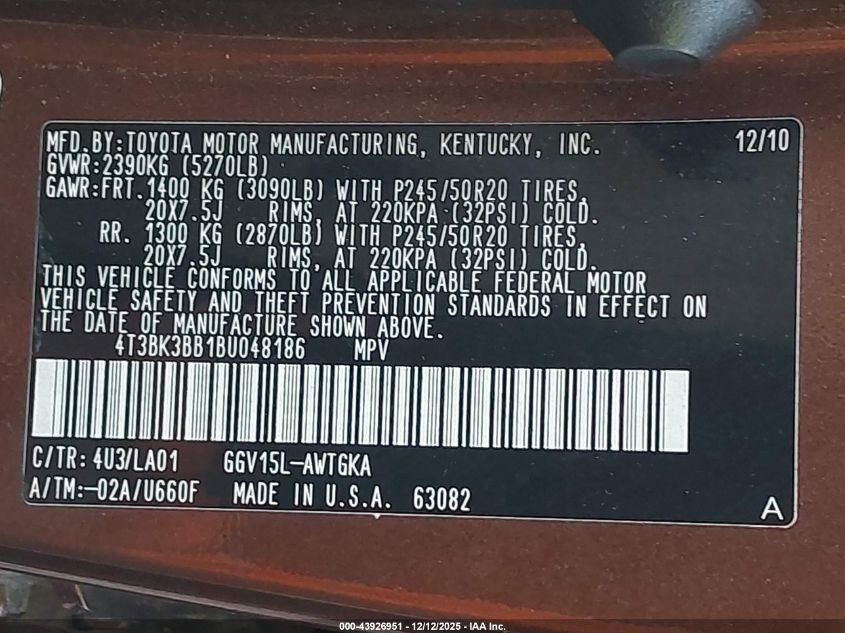 Цвет КоричневийЦилиндры 6Привод Полный приводVIN 4T3BK3BB1BU048186Состояние Заводится и едет (проверено)Повреждения Передняя или задняя