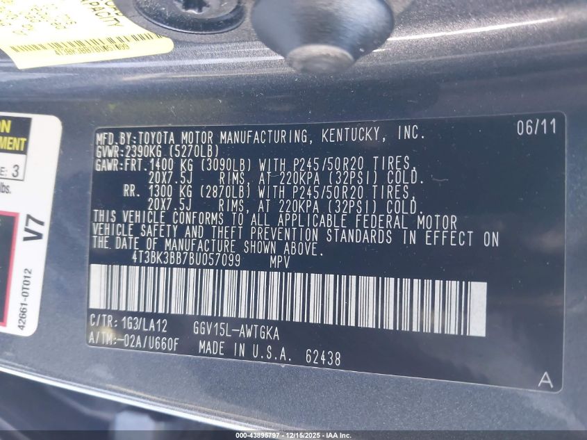 2011 TOYOTA VENZA - 4T3BK3BB7BU057099, цвет - Серый, 3.5, Бензин, Полный привод из США