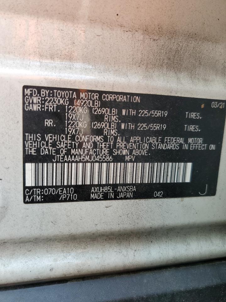 2021 TOYOTA VENZA - JTEAAAAH5MJ045586, цвет - Белый, 2.5, Гибрид, Полный привод из США