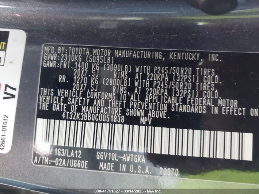 Цвет СерыйЦилиндры 6Привод Передний приводVIN 4T3ZK3BB0CU051838Состояние СтационарноПовреждения Передняя или задняя