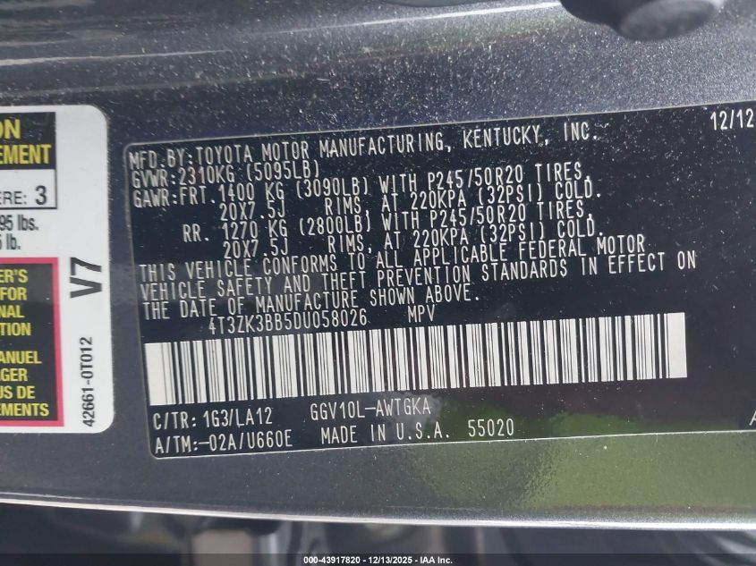 2013 TOYOTA VENZA - 4T3ZK3BB5DU058026, цвет - Серый, 3.5, Бензин, Передний привод из США