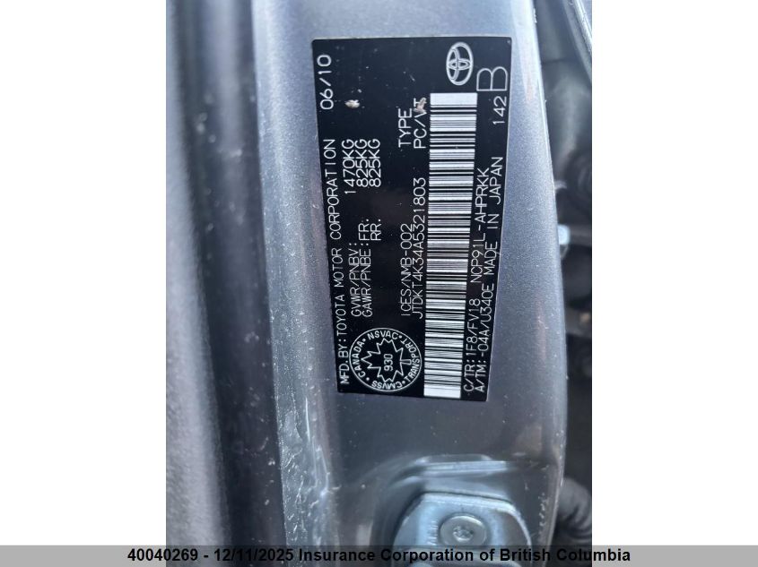 Цвет СерыйЦилиндры 4Привод Передний приводVIN JTDKT4K34A5321803Состояние СтационарноПовреждения По всему автоДата аукциона 2025-12-15