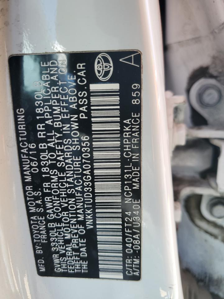 2016 TOYOTA YARIS - VNKKTUD33GA070356, цвет - Белый, 1.5, Бензин, из США