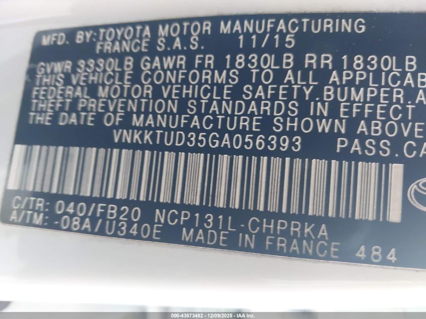 Цвет БелыйЦилиндры 4Привод Передний приводVIN VNKKTUD35GA056393Состояние Заводится и едет (проверено)Повреждения Передняя или задняя