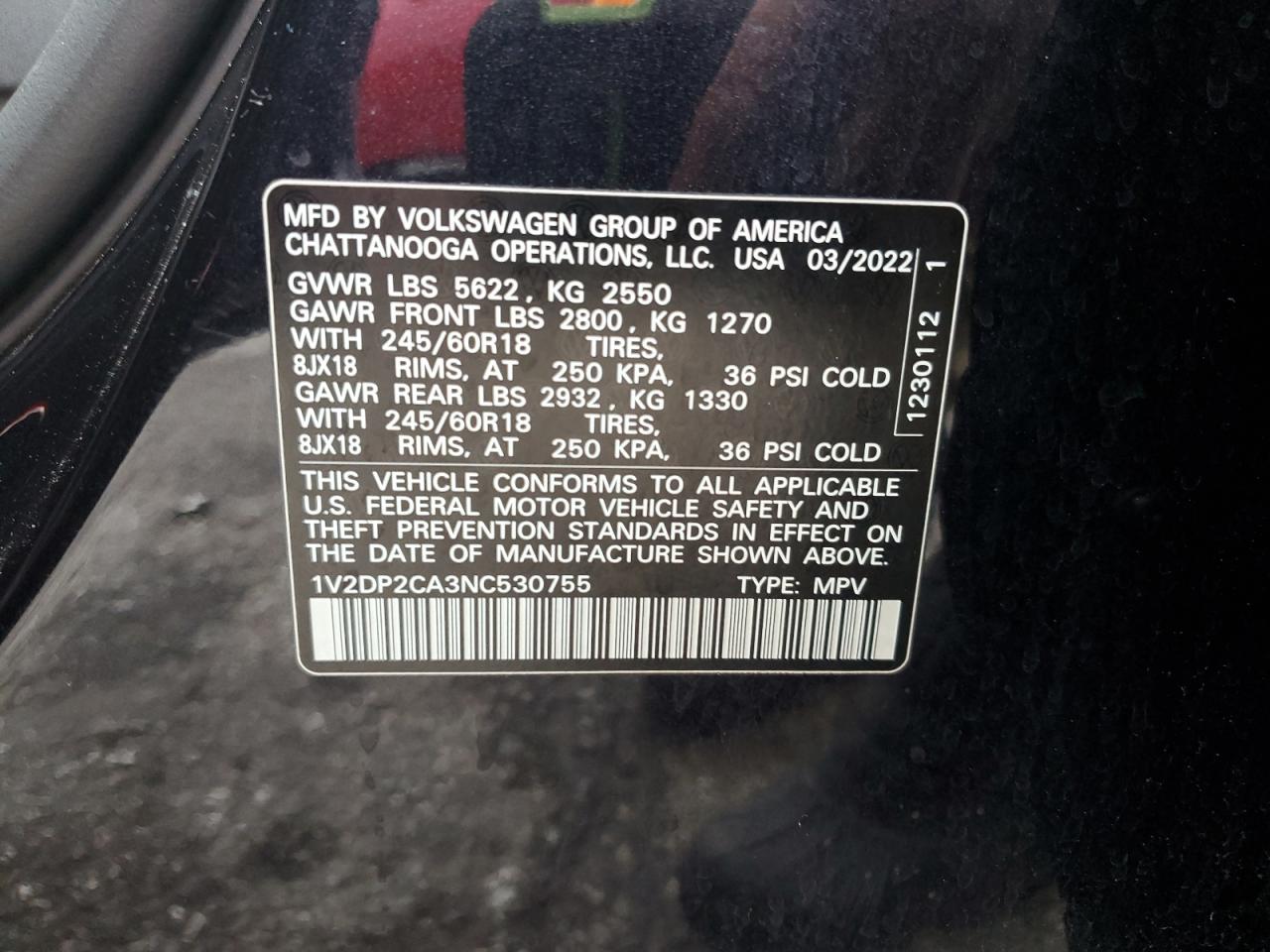 2022 VOLKSWAGEN ATLAS - 1V2DP2CA3NC530755, цвет - Черный, 2.0, Бензин, из США