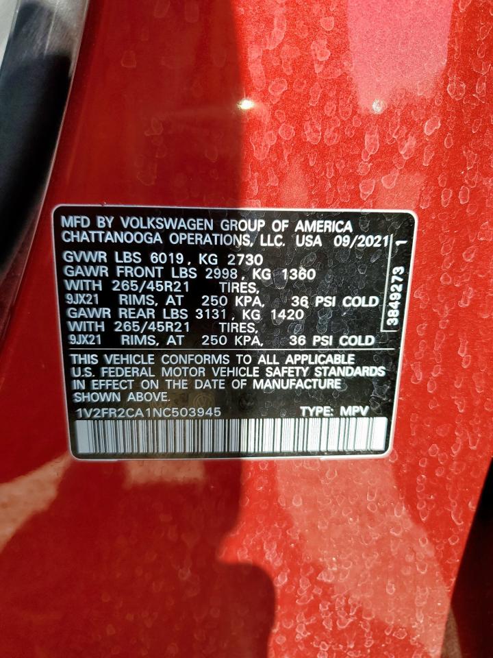 2022 VOLKSWAGEN ATLAS - 1V2FR2CA1NC503945, цвет - Красный, 3.6, Бензин, Полный привод из США