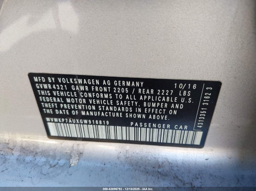 2016 VOLKSWAGEN E-GOLF - WVWKP7AUXGW916819, цвет - Серебряный, U, Электрический, Передний привод из США