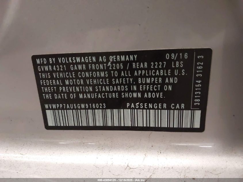 2016 VOLKSWAGEN E-GOLF - WVWPP7AU5GW916023, цвет - Серебряный, U, Электрический, Передний привод из США