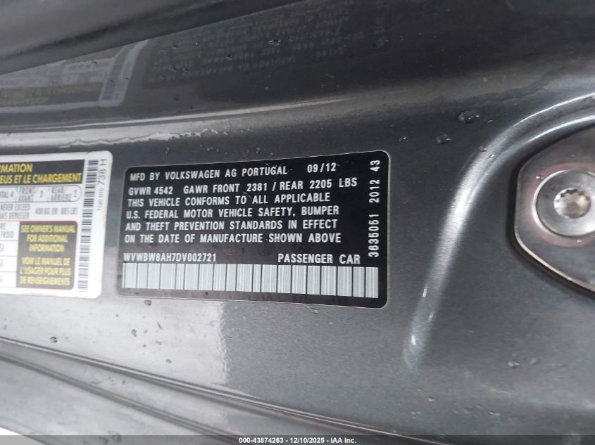 2013 VOLKSWAGEN EOS - WVWBW8AH7DV002721, цвет - Серый, 2.0, Бензин, Передний привод из США