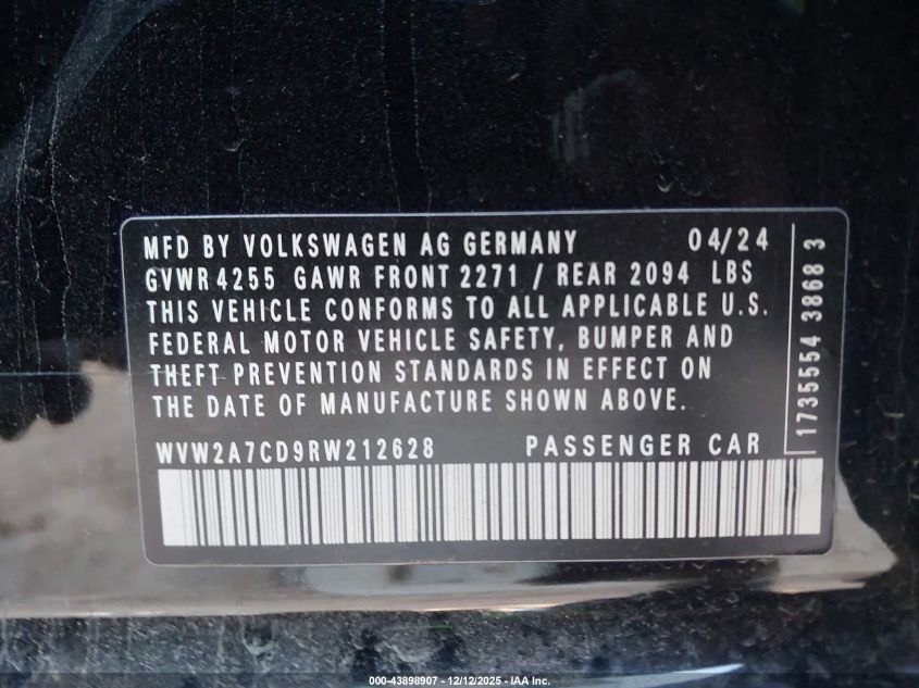2024 VOLKSWAGEN GOLF GTI - WVW2A7CD9RW212628, цвет - Черный, 2.0, Бензин, Передний привод из США