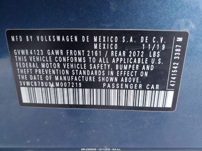 2020 VOLKSWAGEN JETTA - 3VWCB7BU9LM007219, цвет - Синий, 1.4, Бензин, Передний привод из США