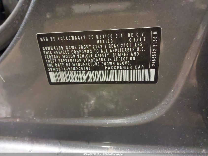 2018 VOLKSWAGEN JETTA - 3VW2B7AJ9JM206562, цвет - Серый, 1.4, Бензин, Передний привод из США