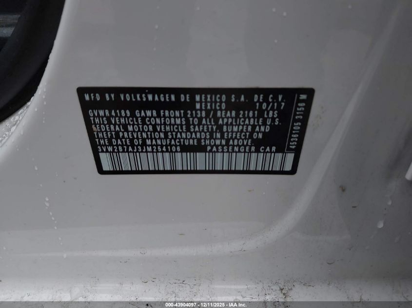 2018 VOLKSWAGEN JETTA - 3VW2B7AJ3JM254106, цвет - Белый, 1.4, Бензин, Передний привод из США