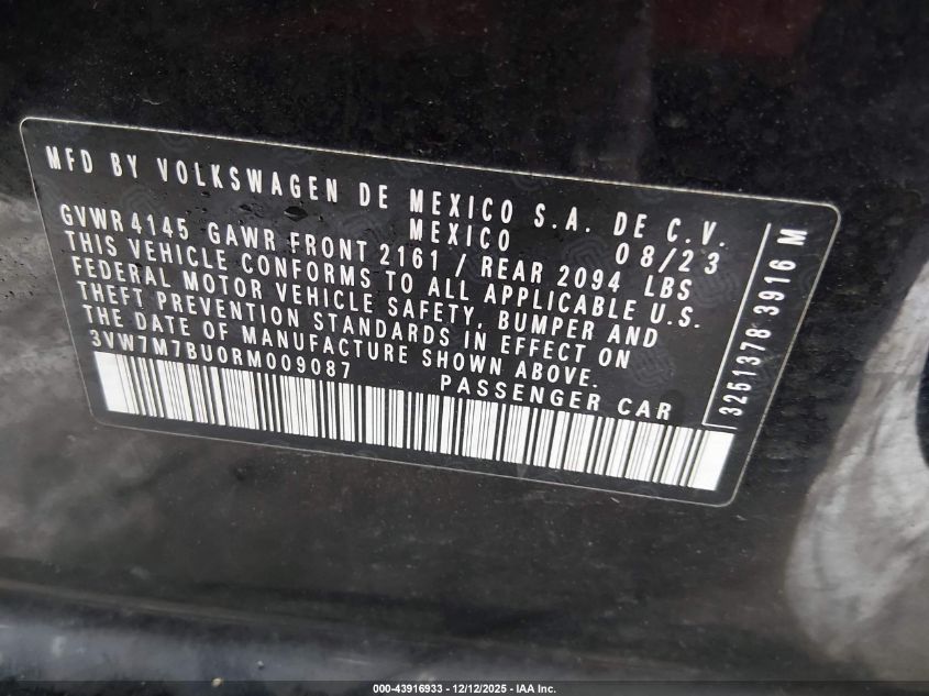 2024 VOLKSWAGEN JETTA - 3VW7M7BU0RM009087, цвет - Черный, 1.5, Бензин, Передний привод из США