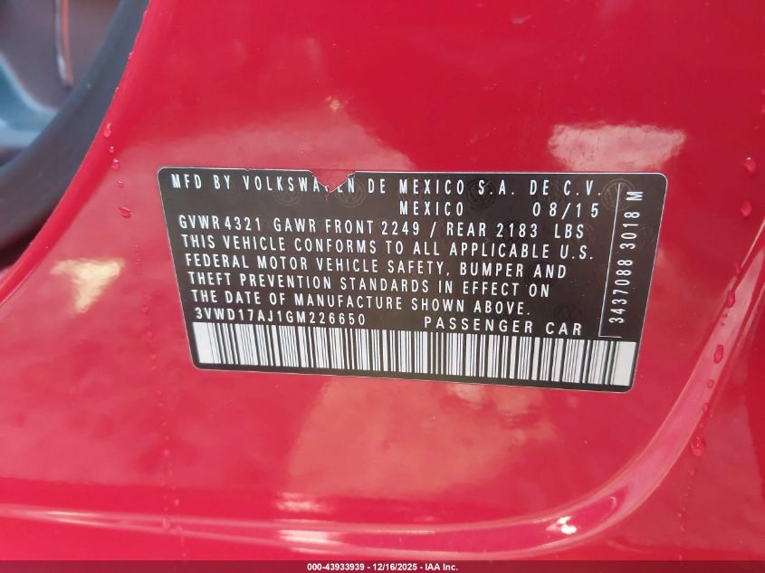 2016 VOLKSWAGEN JETTA S