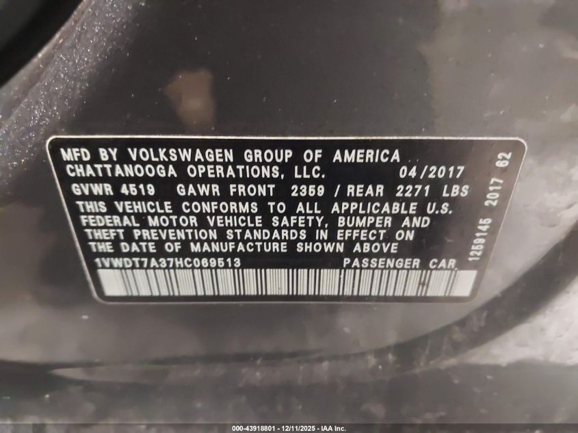2017 VOLKSWAGEN PASSAT SEL PREMIUM
