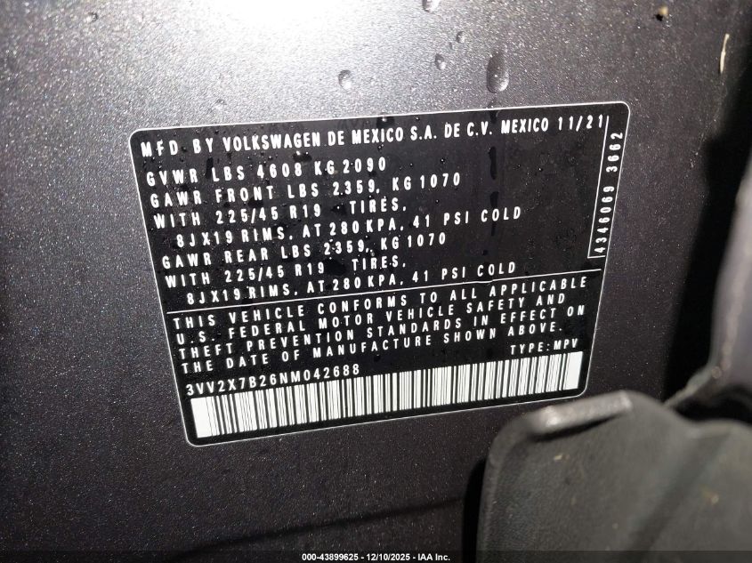 2022 VOLKSWAGEN TAOS - 3VV2X7B26NM042688, цвет - Серый, 1.5, Бензин, Полный привод из США
