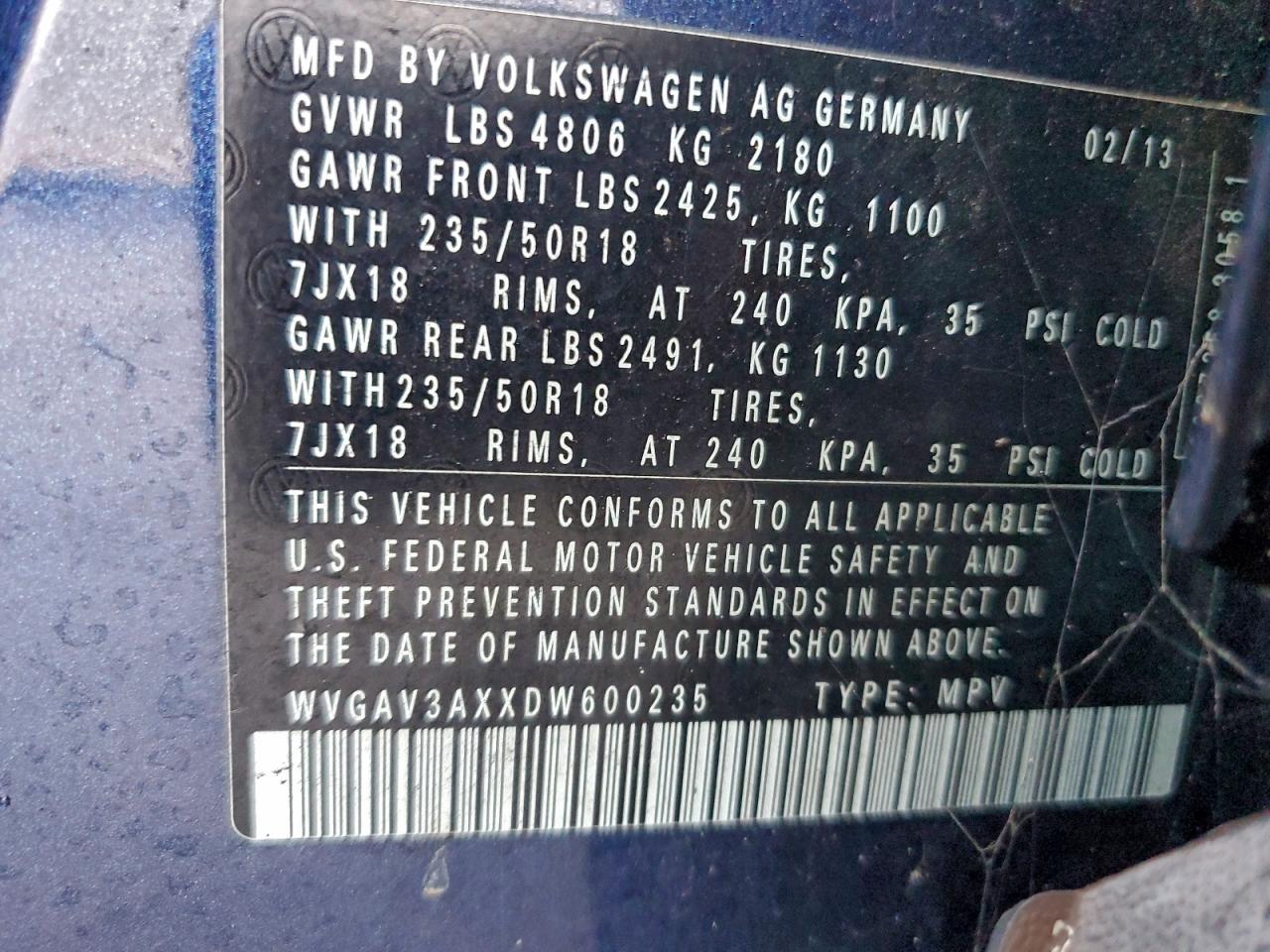 2013 VOLKSWAGEN TIGUAN - WVGAV3AXXDW600235, цвет - Синий, 2.0, Бензин, из США
