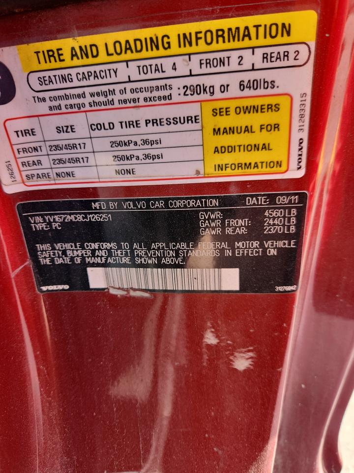 2012 VOLVO C70 - YV1672MC8CJ126251, цвет - Бордовый, 2.5, Бензин, из США