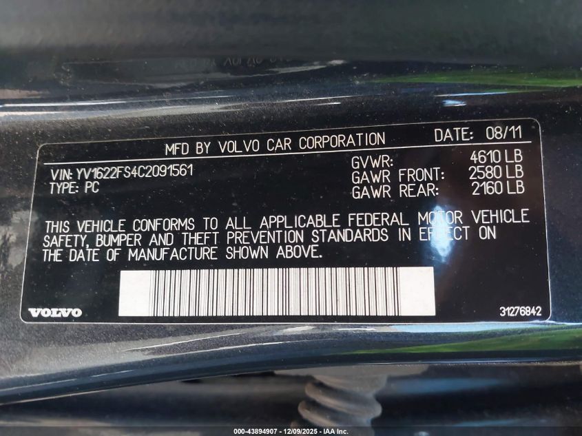 2012 VOLVO S60 - YV1622FS4C2091561, цвет - Черный, 2.5, Бензин, Передний привод из США