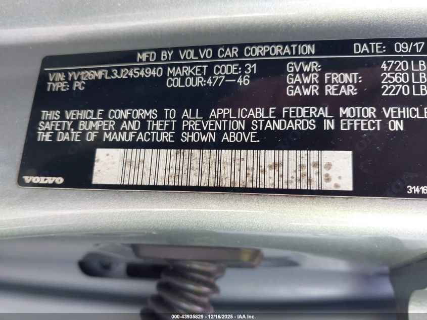 2018 VOLVO S60 - YV126MFL3J2454940, цвет - Серый, 2.0, Бензин, Передний привод из США
