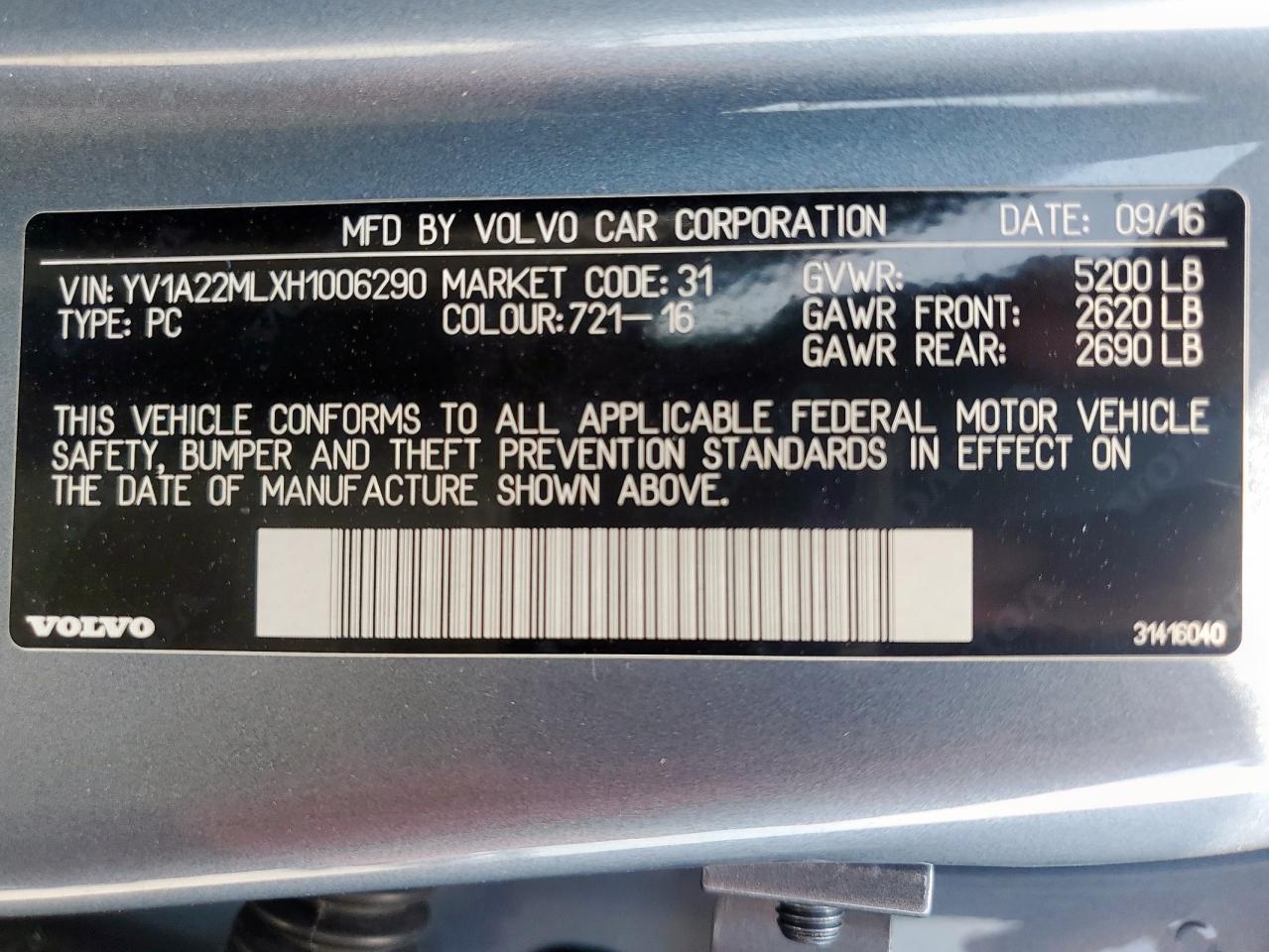 2017 VOLVO S90 - YV1A22MLXH1006290, цвет - Серебряный, 2.0, Бензин, Полный привод из США