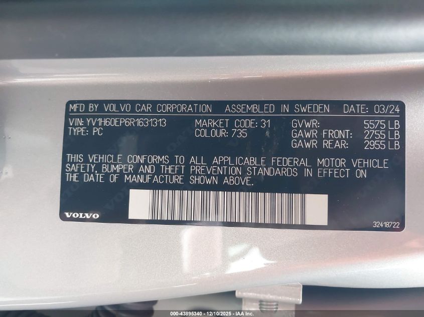 2024 VOLVO V60 - YV1H60EP6R1631313, цвет - Серебряный, 2.0, Гибрид, Полный привод из США